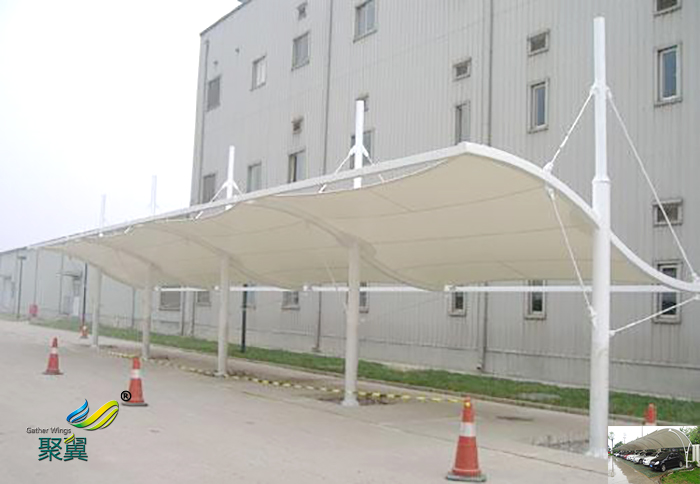 耐用:由于高強(qiáng)度的膜材出現(xiàn),再加上張拉技術(shù)的應(yīng)用,使膜結(jié)構(gòu)車棚抵御風(fēng)雨的能力是一般雨蓬之類不可比擬的。