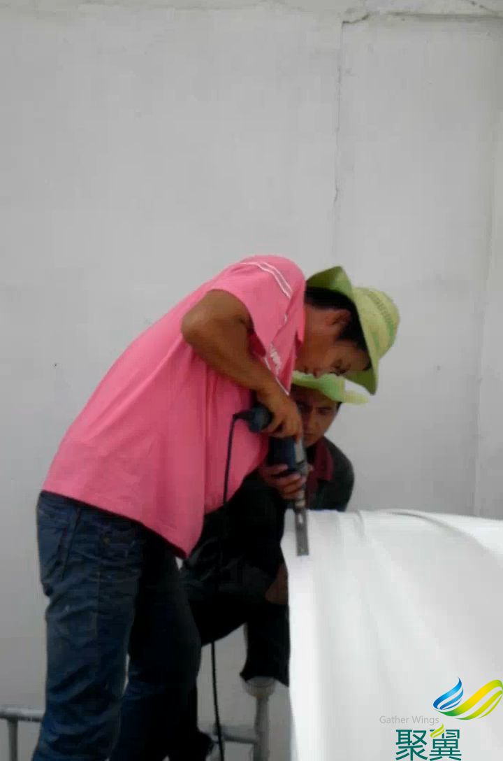 上海東海制藥有限公司膜結構自行車棚膜布安裝現場:(圖1-3)