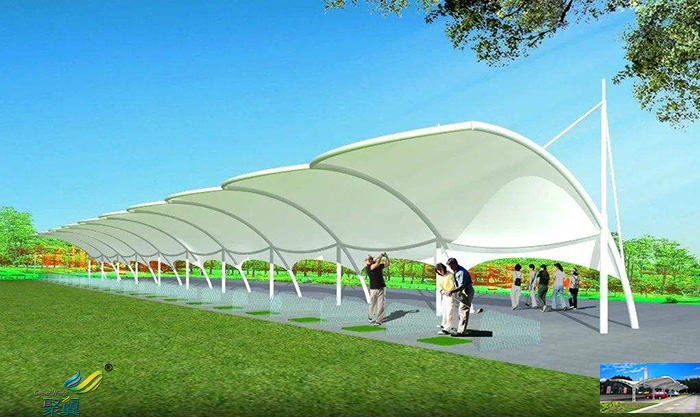 它是用高強度柔性薄膜材料與支撐體系相結合形成具有一定剛度的穩定曲面,能承受一定外荷載的空間結構形式,給人一種古老而又現代的美感! 在膜結構的發展中,因為其主要應用于機場、體育館、停車場、景觀等場所,根據制作材料的不同,在這些地方使用膜結構的時候,根據不同的地點膜結構都有屬于自己的優勢,為了區分方便,大家才直接把應用于景點的膜結構材料叫做景觀膜結構。景觀膜結構的特點: