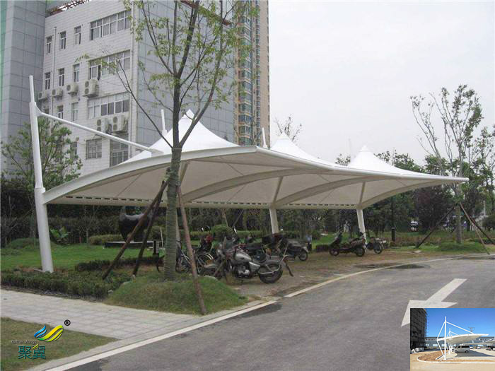 膜結(jié)構(gòu)小區(qū)自行車停車棚膜結(jié)構(gòu)建筑具有耐熱性、耐氣候性、耐藥物性、高強度、防火等特性,而且不易老化,經(jīng)過長期使用仍能保持其最初時的強度。膜結(jié)構(gòu)小區(qū)自行車停車棚如今廣泛使用的膜材料能很好地滿足對于防火的需求,具有卓越的阻燃和耐高溫性能,達到法國、德國、美國、日本等多國標準。