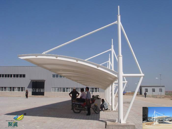 1、膜結(jié)構(gòu)車棚中的膜材有著環(huán)保性能,在特殊的條件下才會分解。