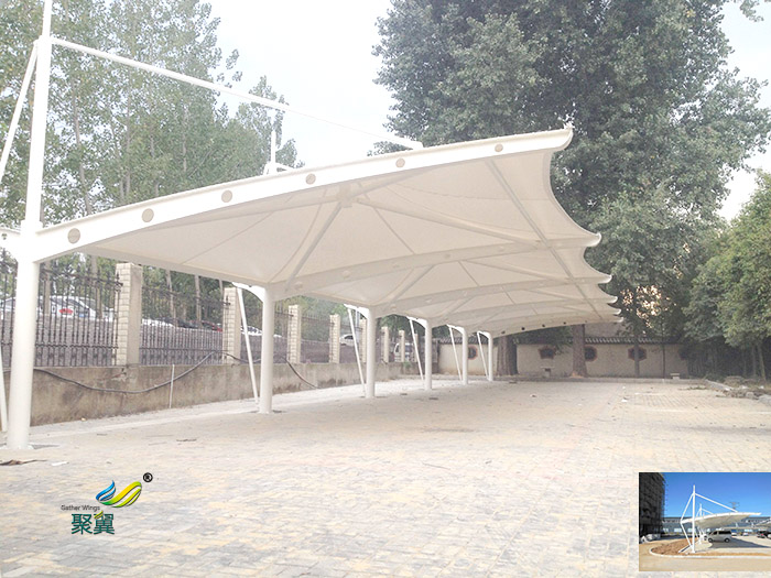 膜結構停車棚的市場前景:隨著都市現代化步伐的加快,汽車成為任何一個都市不可缺少的交通工具。我國由于汽車工業高速發展,城市的汽車擁有量成倍上升,但城市建設規劃沒能盡快適應這一發展的要求,常常是車無停放之地。所以在建設群規劃時就應充分考慮停車場的問題,把停車場的建設和規劃當成現代城市建設規劃的重要組成部分,變得越來越重要。同樣,膜結構在停車場建設中也擔當重要角色。