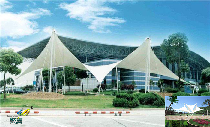 詳細(xì)>>屋頂聚翼舞臺膜結(jié)構(gòu)搭建遮陽篷