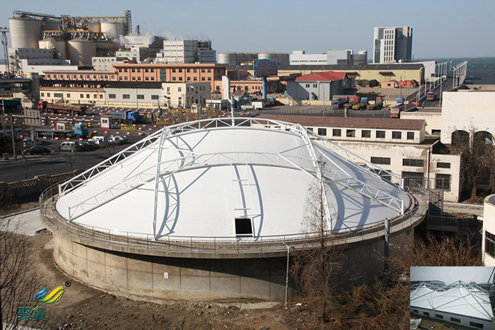 1.污水池加蓋密封性能好;污水池加蓋的膜材具有抗拉性能強,密封性好的特點,可以將廢氣密封在一個密閉的空間,阻止廢氣與空氣的接觸,從而造成二次污染。