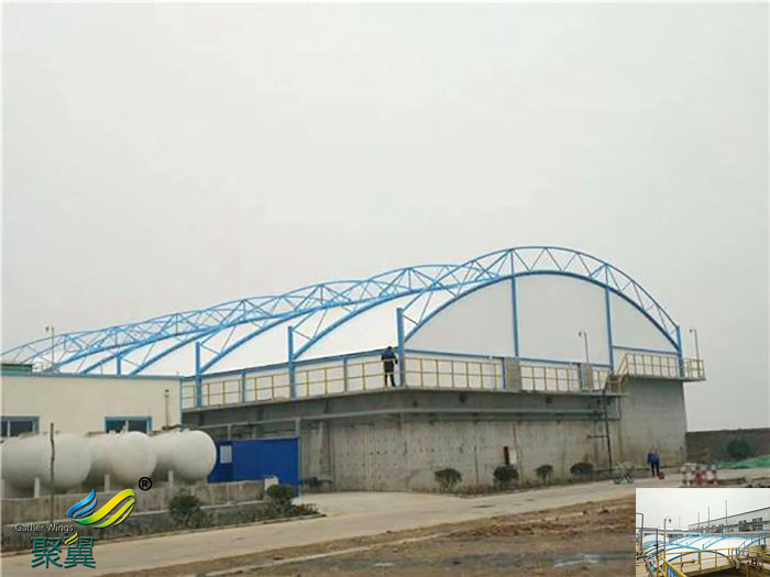 2、防腐效果好;由于膜材料結(jié)構(gòu)建筑的特殊性,可將鋼架設(shè)在外面,只有膜材料結(jié)構(gòu)接觸污水池,基本解決腐蝕問題,而且將來也不用考慮保養(yǎng)問題。