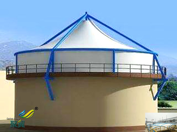 污水池加蓋膜結(jié)構(gòu)充分體現(xiàn)了藝術(shù)美,自然美,技術(shù)美,而且與周圍建筑環(huán)境也比較融合,也不限于空間施展難度大和地理位置狹小的地方。加工施工制造安裝快。