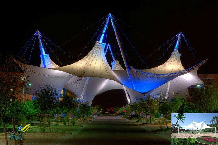 • 屋頂舞臺燈光膜結構高面端翻布篷定制