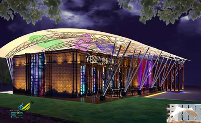 整體更加輕盈:膜材自重輕,相比傳統(tǒng)的建筑方式整體質(zhì)量不到二分之一,舞臺膜結(jié)構(gòu)通過良好的設(shè)計可以最大程度的降低用鋼量,而且抗震等級高,還能夠抵御12級以上臺風。這是一般的雨棚所不能相比的。舞臺膜結(jié)構(gòu)景觀效應(yīng)性:文藝舞臺膜結(jié)構(gòu)新穎別致的膜建筑造型與傳統(tǒng)建筑相比可以突出其獨特性,而且也不會與周圍環(huán)境顯得突兀,整體造型適時適地融合周邊景致,與周圍環(huán)境相適應(yīng),相得益彰。特別是結(jié)合夜間的燈光設(shè)計,會呈現(xiàn)出一個如夢境般的風景線。