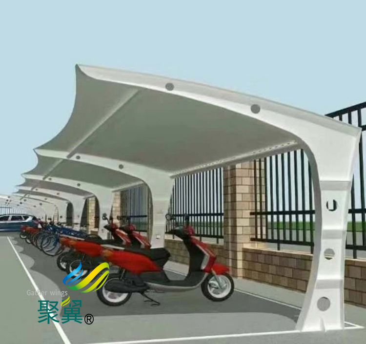 膜結(jié)構(gòu)車棚自行車棚關(guān)于城市的綠色環(huán)境大有協(xié)助。新鮮客觀的外型更給人一種賞心悅目的感受,在發(fā)起市民多選用膜結(jié)構(gòu)車棚自行車出行方法上可以起到必定的輔佐效果。