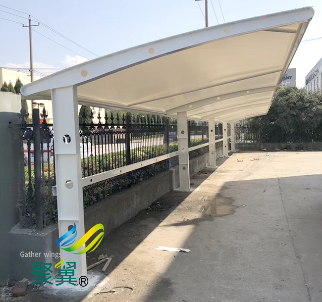 膜結構車棚色感好;人們在棚內對于白色或米白色的膜材有特別強的顏色感知,這兩種顏色表現出對于可見光具有線性光譜透射的特征。這兩種光的透射程度會隨著透射光波長的增加而增加,這使得透射的光比入射的光要溫暖。