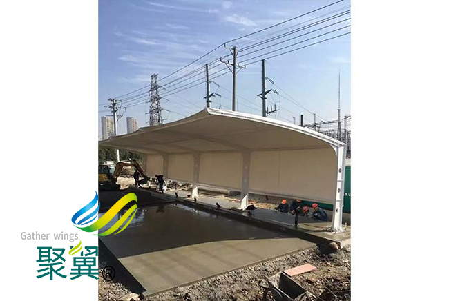 膜結構車棚用鋼量、地基處理、節約能源、施工等方面,均能按時完成工程施工任務并立即投入使用,業主可以直接受惠,比一般磚混結構建筑更具競爭力。