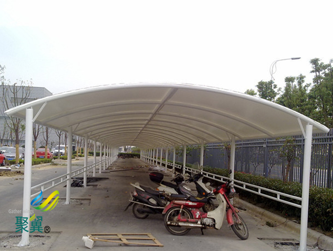 膜結構車棚的防雨能力更強,目前很多車棚使用了永久模式的膜結構車棚膜材,使用了三四十年都沒有問題,尤其是遇到了劇烈的暴風雨氣候,也不會損壞。 膜結構車棚的連接件要滿足的強度、剛度和耐久性,不會發生影響受力功用的變形,連接處的膜結構車棚膜材料不會比其他部位的結構先損壞。 膜結構車棚棚膜材料、鋼材等產品的質量要有保證書。鋼膜結構停車棚的連接件要牢靠,并且可以削減連接處的應力匯集。