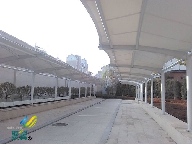膜結構車棚造型多變的支持結構和柔性膜材使建筑物造型更加多樣化,新鮮美觀,同時表現結構之美,且色彩雄厚網站優化,可膜結構車棚創造更自由的建筑形體和更雄厚的建筑語言。