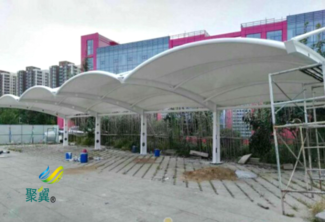 經過控制的自然光和內部溫充可抵達主動節能的企圖。可展構造即可開敞也可閉合,膜結構車棚的靈敏性使其可以改動空間的特征。 膜結構車棚透光性,透光性是現代舞臺膜構造最被普遍認可的特性之一。膜結構車棚膜材的透光性能夠為建筑提供所需的照度,這關于建筑節能**重要。關于一些請求光照多且亮度高的商業建筑等尤為重要。經過自然采光與人工采光的綜合應用,膜結構車棚膜材透光性可為建筑設計提供*大的美學創作空間。