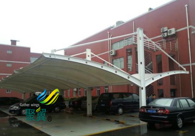 膜結構車棚透光性半透明是膜結構車棚*顯著的特征,與其它材料相比,無論是在美觀上或是在操作上,都有顯著的優越性;散射光線,消除眩光,能將光線廣泛地漫射到其內部空間;膜結構車棚材料內部涂層具有較高的反射率,能在夜間保持棚內的照明效果;夜間逆光照射下表面發光;膜結構車棚自然照明,節省能源。