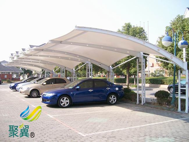 膜結(jié)構(gòu)車棚安裝首先要注意的就是膜結(jié)構(gòu)車棚整體框架采用方鋼焊接成型龍骨架,框架整體做防銹處理,刷防銹底漆三遍,表面噴涂白色高級汽車漆,停車棚主立柱采用150×150鍍鋅方管作膜結(jié)構(gòu)車棚的支撐柱,膜結(jié)構(gòu)車棚身整體結(jié)構(gòu)牢固抗震防風(fēng)系數(shù)高,耐腐蝕。