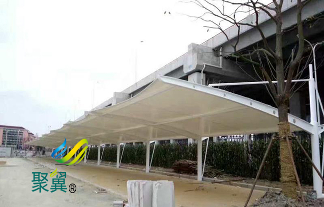 膜結構車棚透光率20%,膜結構車棚高科技產品     膜結構車棚透光性:膜結構車棚自行車棚透光性能好(透光率20%)。在陽光下曝曬都不會產生黃變、霧化、透光不佳。