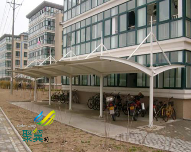 膜結構車棚透光、自潔性:常用建筑膜材的外觀為PVDF資料涂層,存在物理服從動搖與良好的自潔效果,膜結構車棚膜外觀粉塵一般環境下雨水可自行沖洗干凈,同時包管建筑的使用壽命。