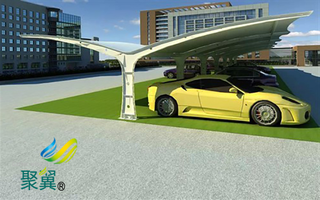 膜結構車棚能夠拆卸,易于搬遷,特別是在建造短期應用的大跨度建筑時,更為經濟。