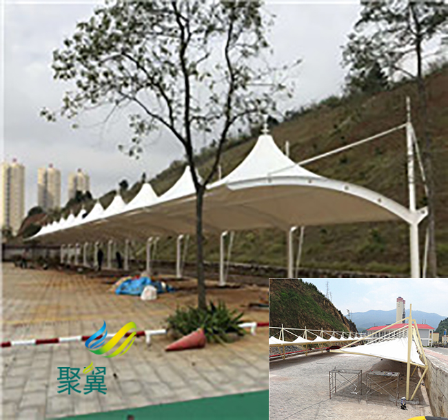 膜結構車棚膜材清洗|膜結構車棚組裝拼接