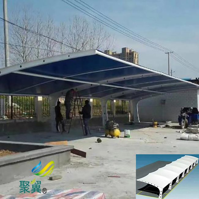 膜結(jié)構(gòu)車棚透光、自潔性:常用建筑膜材的外觀為PVDF資料涂層,存在物理服從動搖與良好的自潔效果,膜結(jié)構(gòu)車棚膜外觀粉塵一般環(huán)境下雨水可自行沖洗干凈,同時包管建筑的使用壽命。
