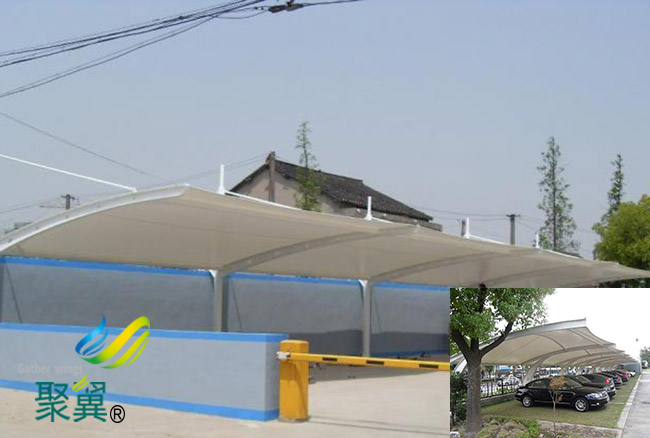 膜結構車棚選擇相適應的材料與工藝,同時滿足不同建筑環境的防腐、防水要求。至于節點美觀是無論如何重視都不過分,任何節點設計都應放到特定局 部與整體環境,以唯美去審視、思量,如連接件的光滑精美外形、力流的連續流暢、對稱與平衡,輕靈簡潔性等