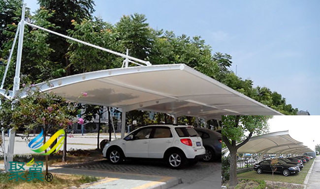 膜結構車棚在停車場建設中也擔當著重要角色,合適的車棚款式打造了綠色自然的家。