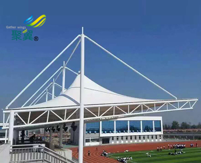 操場看臺膜結構頂棚|體育場張拉膜罩棚|運動場看臺雨篷