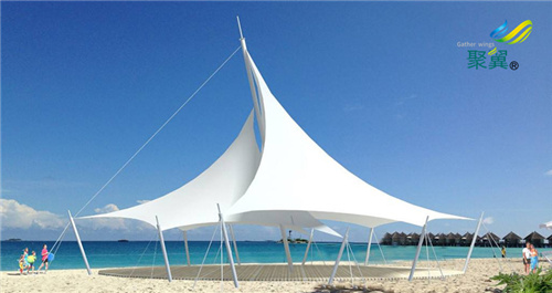張拉膜具備的優(yōu)勢(shì)有哪些指的是以園林與建筑相結(jié)合的張拉膜結(jié)構(gòu)設(shè)計(jì),位于風(fēng)景區(qū)、公園、旅游景點(diǎn)等,本身具有園林區(qū)域的景觀張拉膜結(jié)構(gòu)設(shè)施是由穩(wěn)定的空間雙曲張拉膜面、支承桅桿體系、支承索和邊緣索等構(gòu)成的空間結(jié)構(gòu)體系,目前張拉膜結(jié)構(gòu)已經(jīng)被廣泛應(yīng)用在體育場(chǎng)館、商業(yè)設(shè)施、交通設(shè)施等不同領(lǐng)域