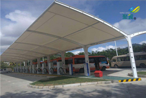 2、認為新的張拉膜結構車棚短期內用不著維護。新的膜結構候車棚都會有一個磨合期,在磨合期內螺絲等部件很容易發生松動,所以一定要定期定時的檢查維護。