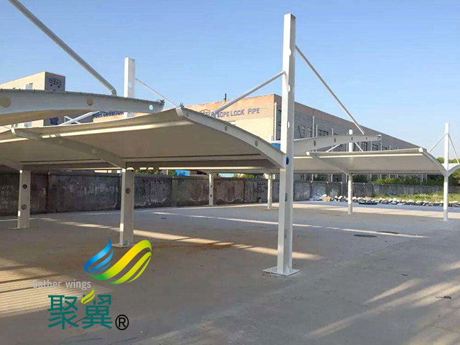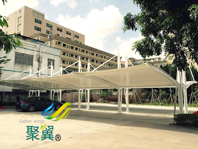 膜結構車棚跨度空間大指出其因為自重輕,膜結構車棚修建能夠不需要內部支撐面大跨度掩蓋空間,這使大家能夠列靈活計和運用修建空間,描繪出愈加有構思的修建。