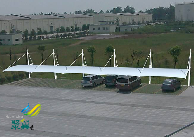 膜結構車棚是提供給車輛停泊的地方,使車輛避免了風吹雨打。來保護膜結構車棚自行車,汽車等不受損傷。在膜結構車棚未出現之前,市場主要的是鐵制車棚,鋁合金車棚,彩鋼車棚等。這些膜結構車棚都是采用金屬構件來制作,因此具有笨重,形式單調的缺點,沒有個性和美觀。