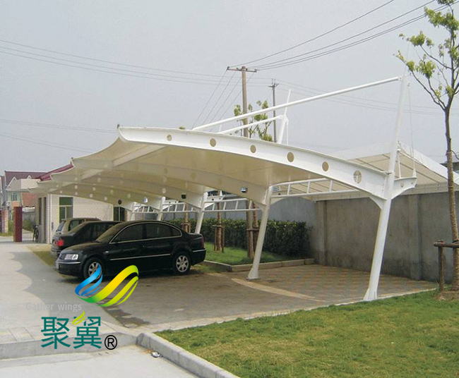膜結構車棚是一種公用建筑物,這種產品的首要要求就是耐用穩固,膜結構車棚都是鋼構支撐柱,然后其上進行焊接等工藝加裝膜結構車棚膜材料頂棚。如果是采用的聚碳酸酯材料作為頂棚的話,采用螺栓固定。