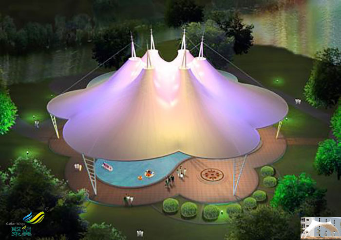 2.舞臺膜結構具有特定功用的修建都可經過立意得以表達,舞臺膜結構的共同外形表現了修建自身的天然美感。