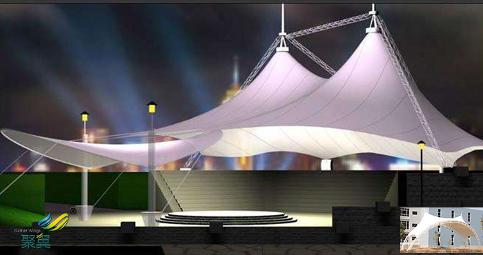 1.舞臺膜結構的共同曲面的外形是使其具有激烈的雕塑感,膜面依靠預張力形態達到穩定性。
