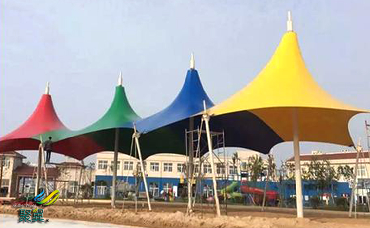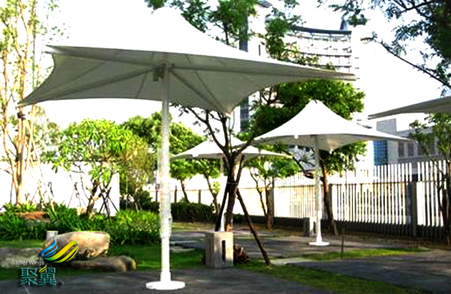 多色膜結構傘不但可以防風雨而且可以避日照,用途多樣化。頂篷可以起到遮陽的作用,阻擋夏日毒辣的日照,可控制室內溫度的上升,冷氣效果也大幅度提高,從而節約能源。多色膜結構傘是您感受家庭式花園或菜園樂趣和景觀賞景的好場所。可以種些季節性花草、食用小蔬菜,觀賞花草,蜂飛蝶舞,別有一番情趣。