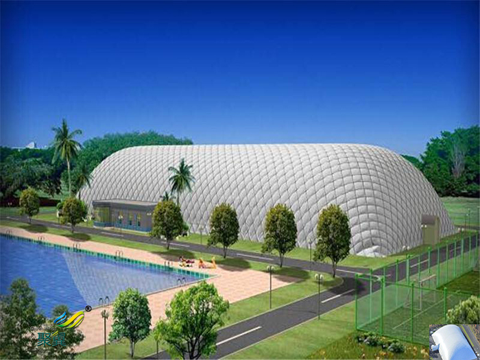 1. 氣承式膜結構:膜面本身不形成封閉曲面,其周邊固定于剛性邊界或基礎,密閉空間由膜面、四周封閉邊界與室內地面形成。