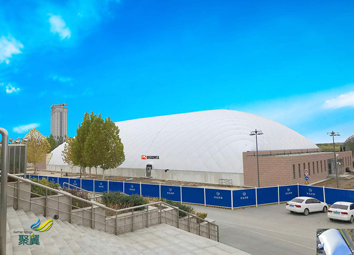 充氣膜結構是一個相對密閉的空間結構,與傳統空間結構建筑不一樣的是,它通過風機向結構內部鼓風送氣,使膜結構內外保持一定的壓力差,以保證膜結構體系的剛度,維持所設計的形狀。