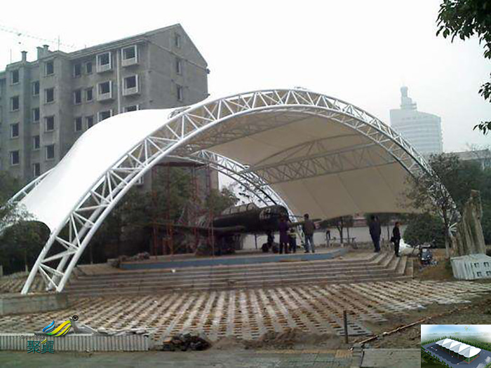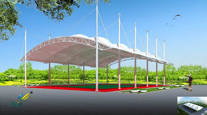 膜結構建筑是一種全新的建筑結構形式,它集建筑學、結構力學、精細化工與材料科學、計算機技術等為一體,具有很高技術含量。其曲面可以隨著建筑師的設計需要任意變化,結合整體環境,建造出標志性的形象工程。