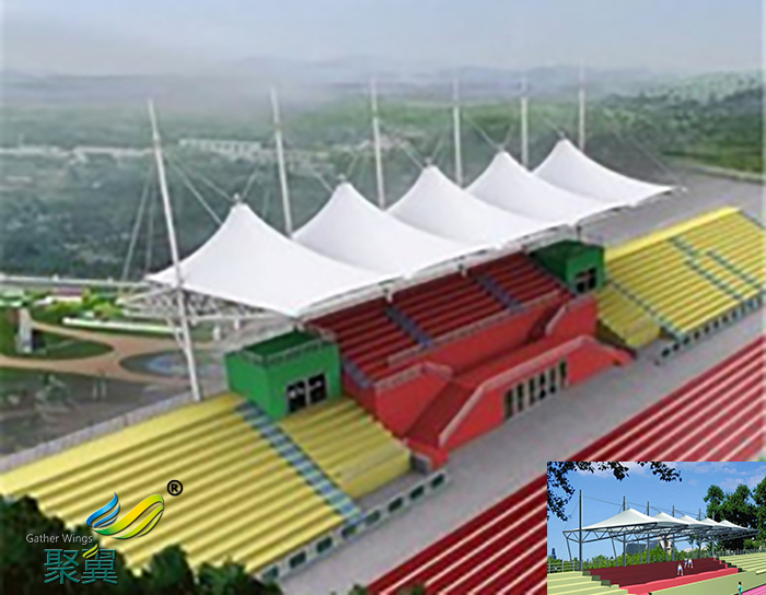 膜結構看臺是膜結構材料近年來應用的一個新領域,膜結構建筑能很好的籠罩全部的看臺,膜結構的張拉樣式使得建筑的空間跨度變的更大,同時能縮小建筑的結構,建筑的整體重量減輕,這樣施工就會變的簡單安全。這些都是膜結構被廣大用戶選擇的關鍵因素。膜材的表面都有一種涂層,涂層是為了預防灰塵雨水的影響,起到保護膜結構使用年限的作用。