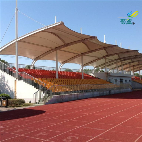 為了解決鋼構配合鋁塑板的弊病,膜結構慢慢進入了看臺市場,相比傳統的建筑形式膜結構體育看臺的優點很多:首先它不僅滿足了造型的多樣性、夸張性,而且也完美的解決了對于大跨度結構用鋼量大的問題,往往對于大跨度的結構來說,起跨度尺寸就代表著需要大量的鋼結構來補足,然而對于膜結構來說,其特有的延展性和超高的的抗拉強度完美的解決了大跨度帶來的困擾,大大的節約了施工成本。