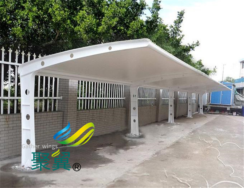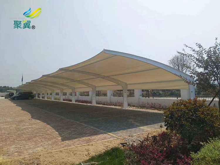 膜結構車棚用于膜結構建筑中的膜材料種類繁多,且不同的國家對膜材料的要求也不盡相同,按材質的不同可分為ETFE膜材、PTFE膜材和PVC膜材三大類,在建筑中常用的膜材料則為PTFE及PVDF膜材料兩種。冬天雨雪對于膜結構的迫害還是有一定殺傷力的,雨雪對膜結構車棚的破壞主要是通過積壓產生的,如果在初修建的時候沒有做好排水措施,那么在遇到大雨或是大雪天氣的時候,膜頂的局部地方就會堆積厚厚的一層雨雪,如果重力足夠的話,輕則使膜面彎曲變形,嚴重的話就會使其塌陷。