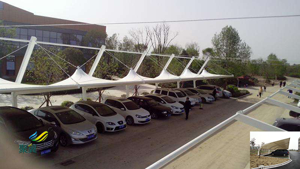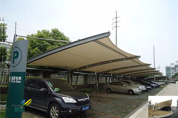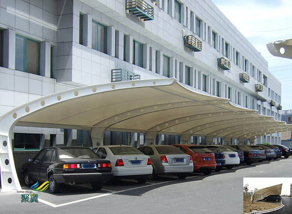 與普通車棚不同的是膜結構車棚有一個共同的外觀,被賦予了創造性與藝術性的一種形狀,它不僅是可以作為城市中的停車棚,而且大大提高了城市的外觀。該車棚的價格也很實惠。該車棚除了防風防雨外,還能夠防止紫外線進入車庫,從而來減少汽車的性能的損失。很長一段時間之后它將節省大量的金*和車輛維護成本。